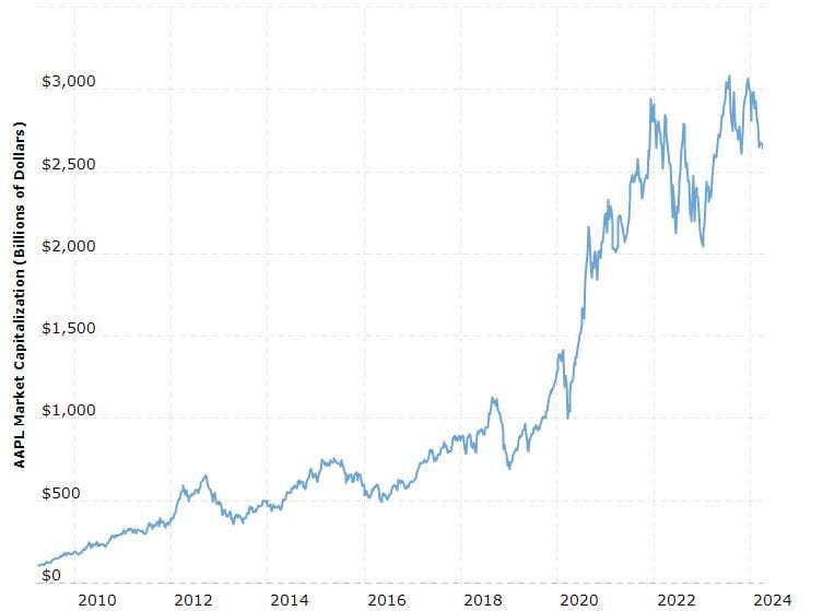Desde o lançamento do iPhone, o valor de mercado da Apple saiu US$73 bilhões para US$2,65 trilhões de dólares. Em 2011 ela tornou-se a maior empresa do mundo termos de valor de mercado, posição que manteve quase ininterruptamente até ser recentemente superada pela Microsoft.