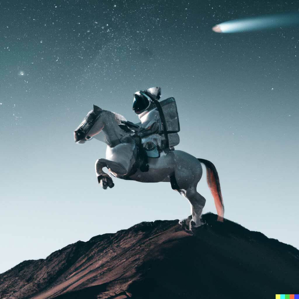 É um modelo baseado em Transformer que cria imagens. A primeira versão foi lançada em janeiro/2021. Este modelo foi treinado em mais de 400 milhões de pares de imagens e textos, com 12 bilhões de parâmetros do GPT-3. Em abril/2022, a OpenAI anunciou o DALL-E 2, um novo sistema de IA para criar imagens e arte realista a partir de instruções ou palavras descritivas em inglês. Os casos de uso do DALL-E 2 incluem combinar ou editar imagens existentes e criar diferentes variações de imagens existentes. A imagem abaixo foi criada baseada no seguinte input “um astronauta andando num cavalo, com estilo realista”.