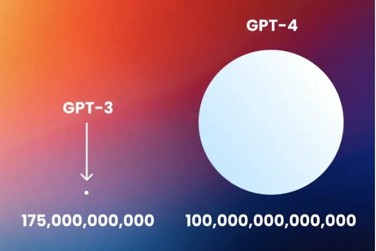 Em março/2023 a empresa lançou o GPT-4. Vou deixar a imagem abaixo explicar melhor a diferença de escala entre os dois: